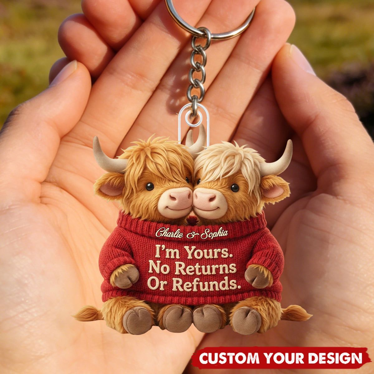 Soy tuyo. No hay devoluciones o reembolsos-personalizada Highland vaca pareja llavero
