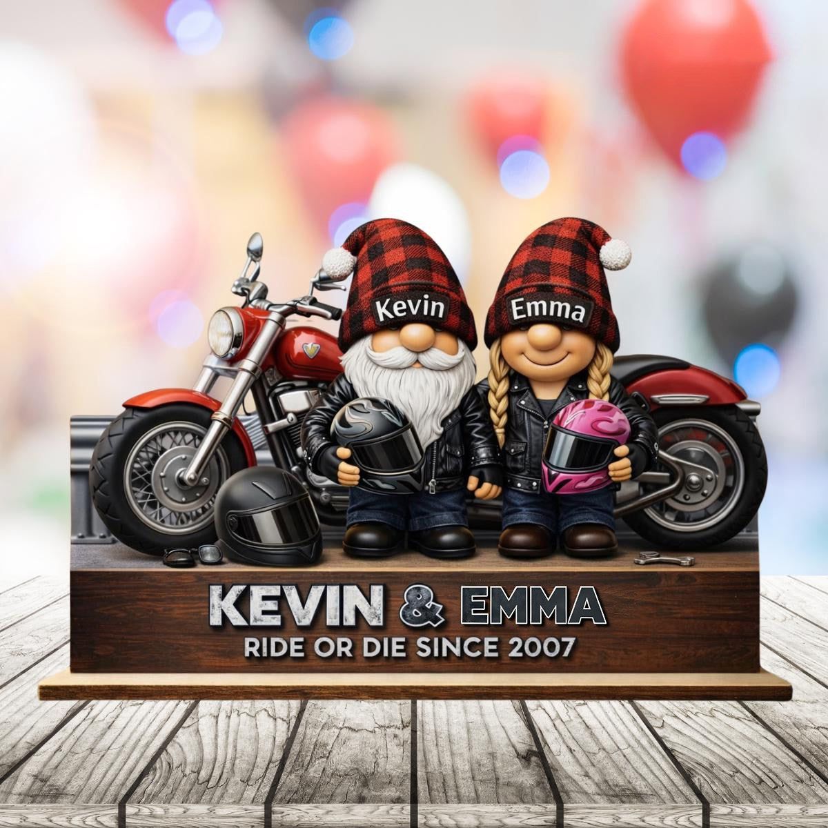 Signo de madera pareja enana en motocicleta-decoración romántica para parejas