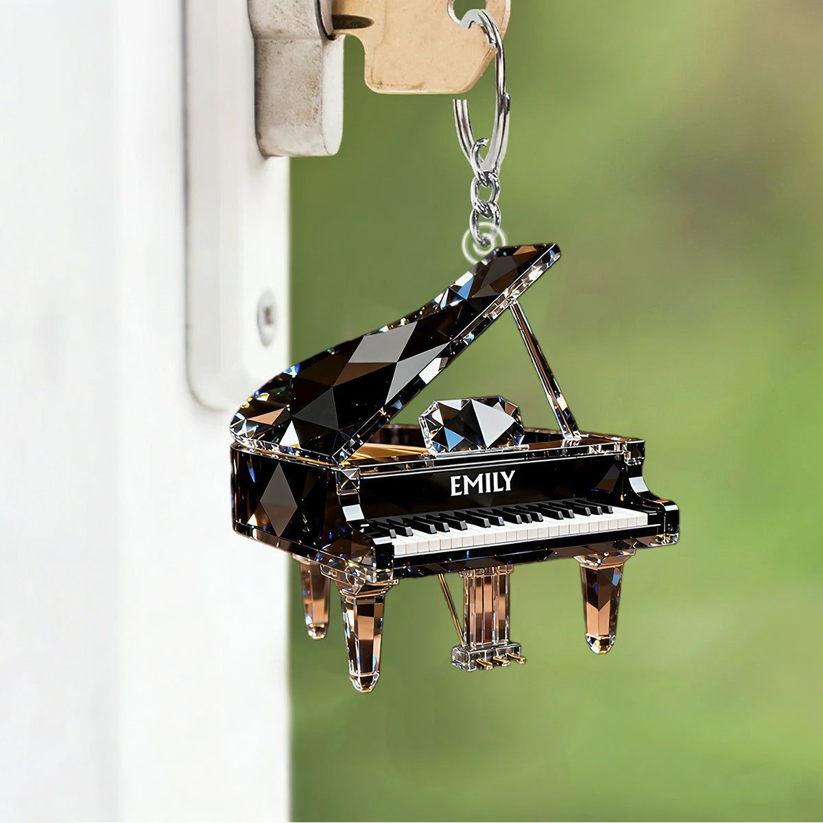 Llavero personalizado de acrílico del efecto cristalino del piano, regalo del pianista, tema de la música del piano