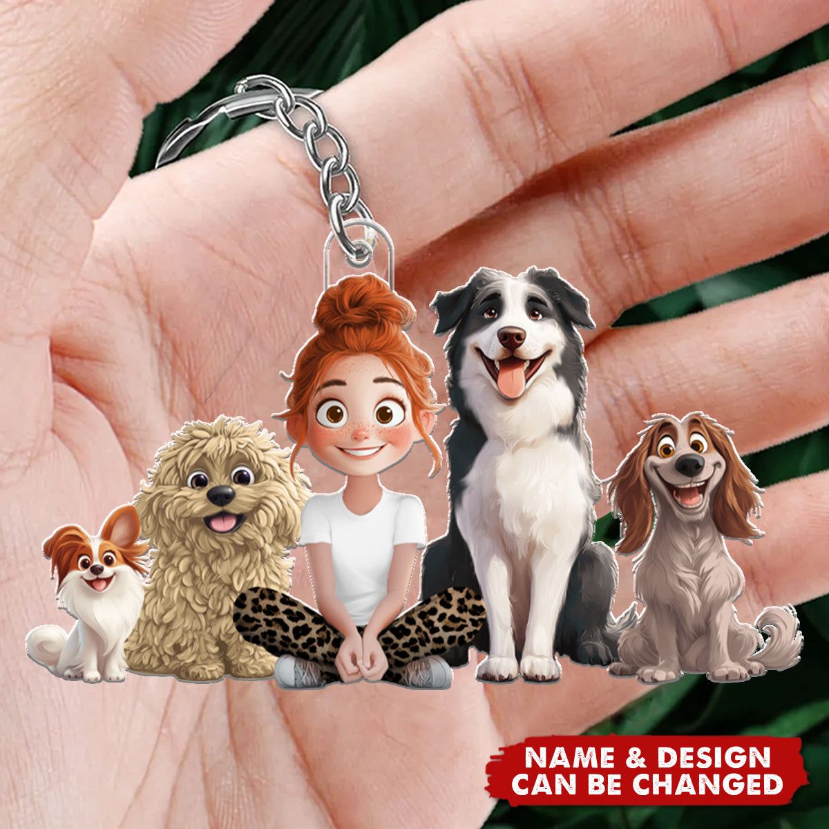 Una chica y sus perros-llavero personalizado-regalos para los amantes del perro