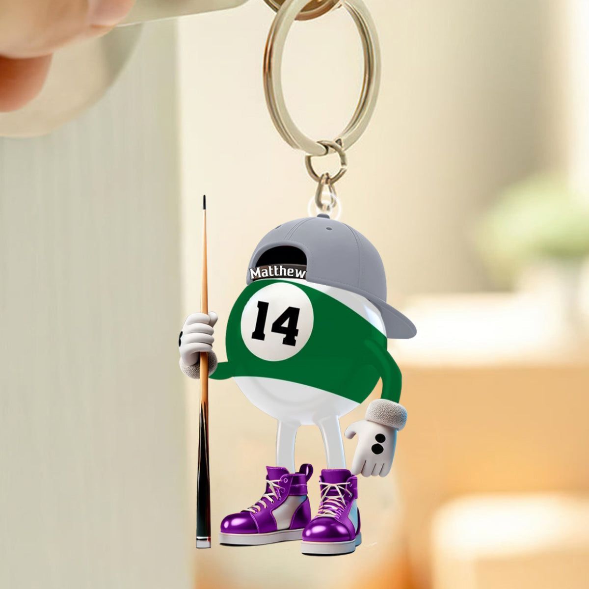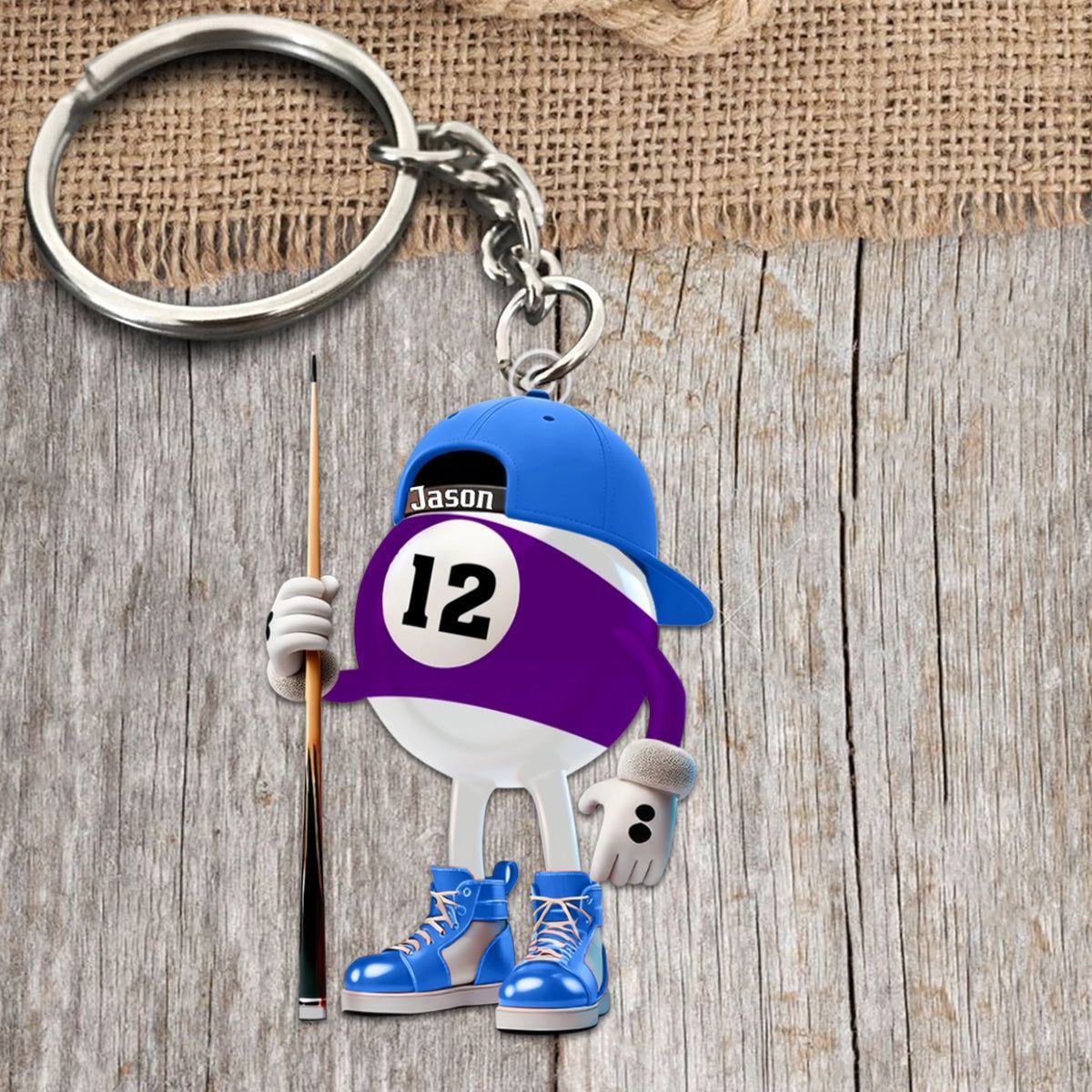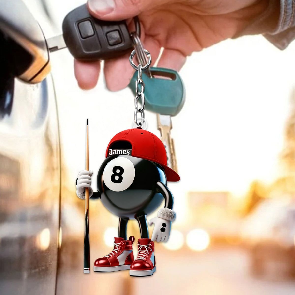 Llavero personalizado del billar del nombre, regalo del amante del billar