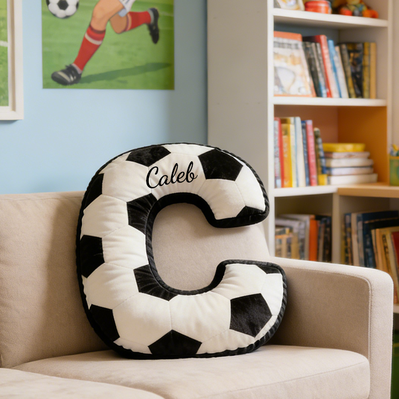 Personalización totalmente personalizada: Elija cualquier letra (A-Z) y tenga un nombre (por ejemplo, Alice) bordado en ella, creando un cojín exclusivo para jóvenes fanáticos o entusiastas del fútbol.