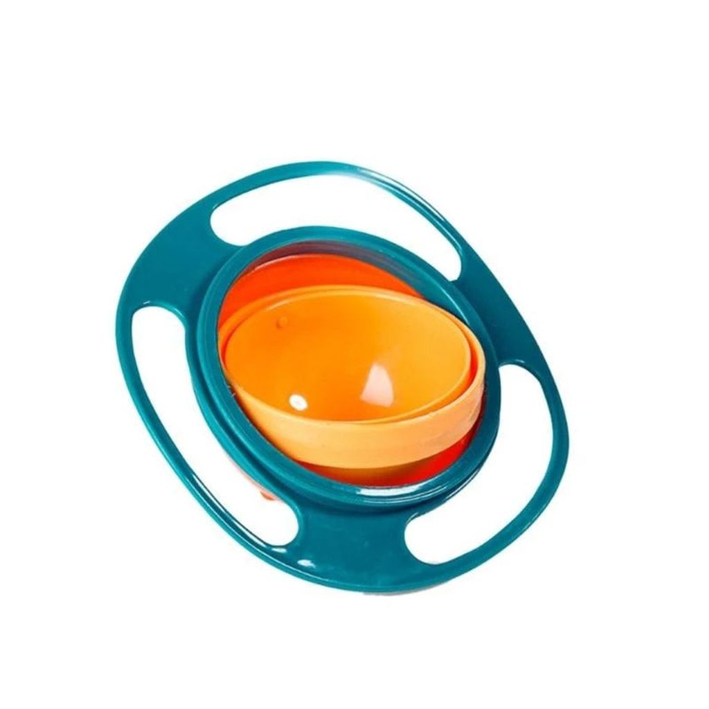 Kids have wobbly movements and poor coordination, so spills are going to happen! However, this nifty bowl has an anti-spill design, in which the inner bowl with gyroscopic motion can rotate 360 degrees and always keep the open side facing up to keep dry foods inside and avoid food spilling. Plus, we added three handles for easy carrying and a lid to cover the food when not in use! Unless you are purposefully trying to get this bowl to spill, the chances of it spilling are very slim!