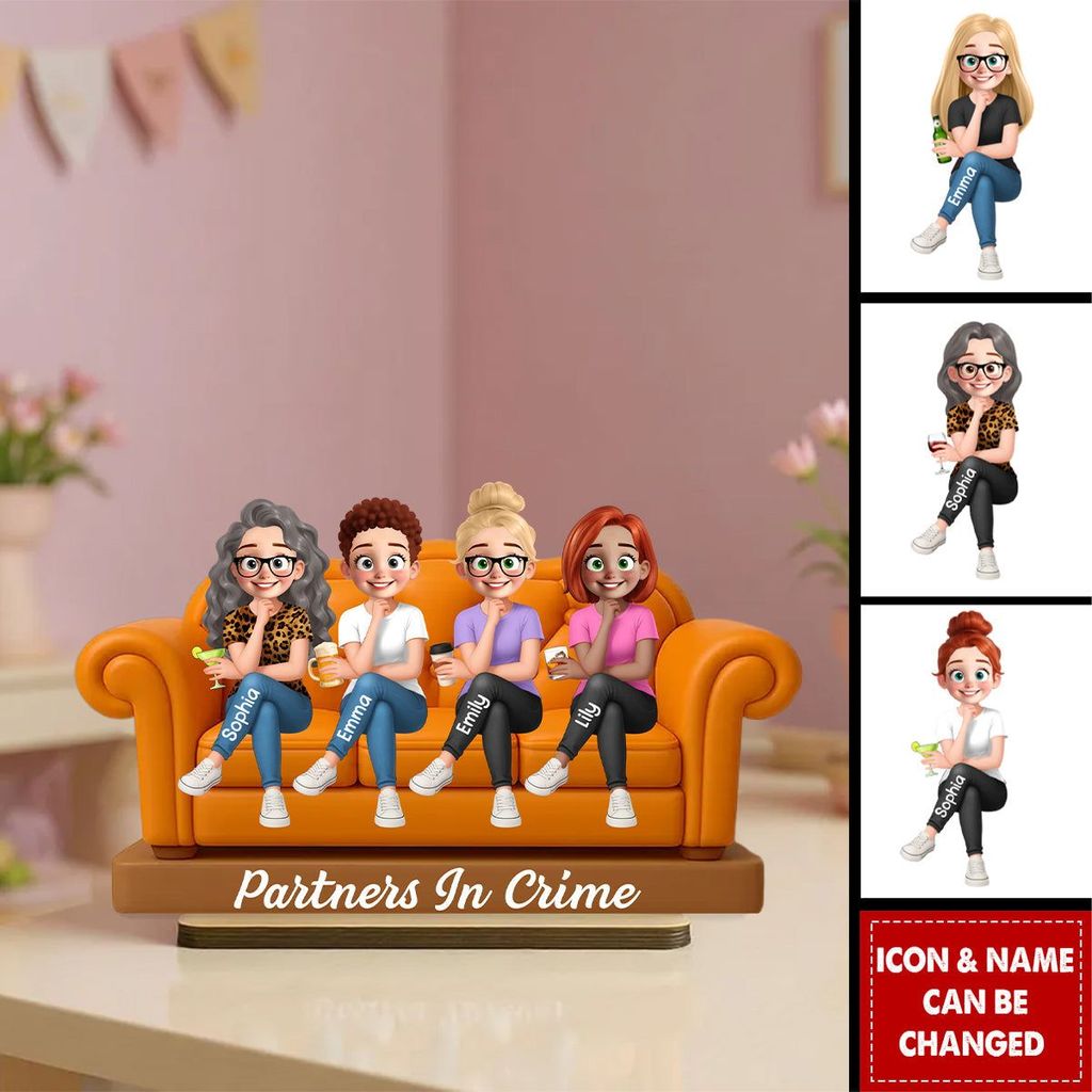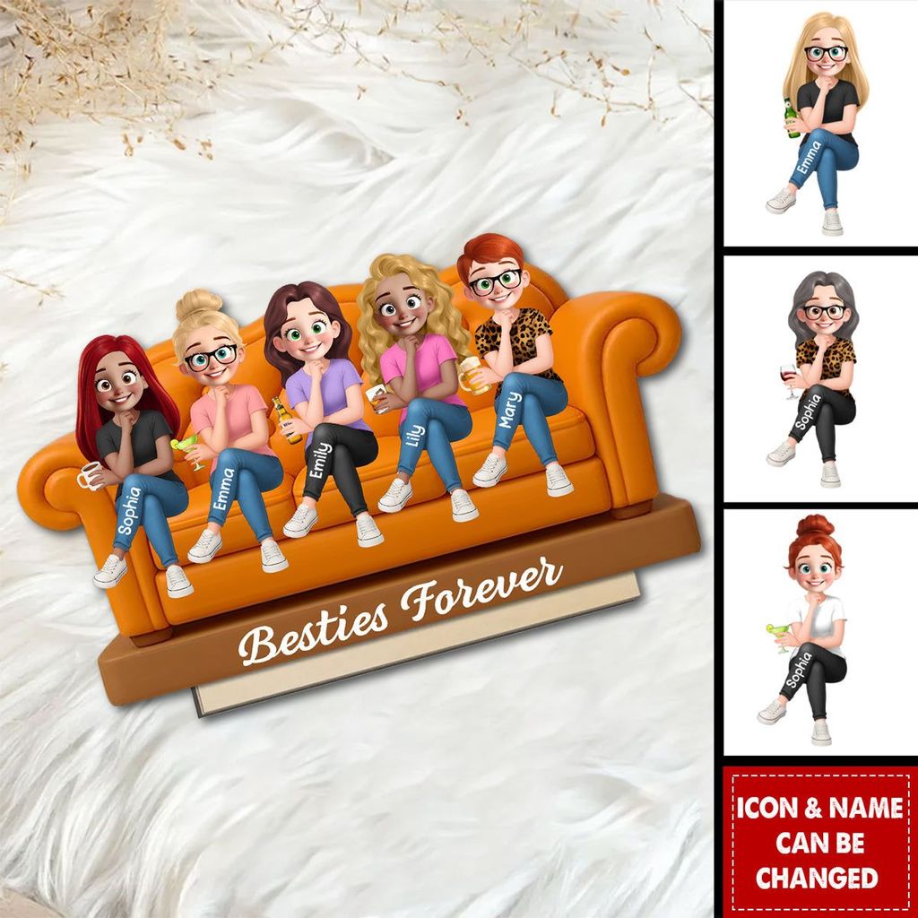 Besties sentado en el sofá personalizado de madera placa de pie, regalo para Besties, hermanas, mejores amigos