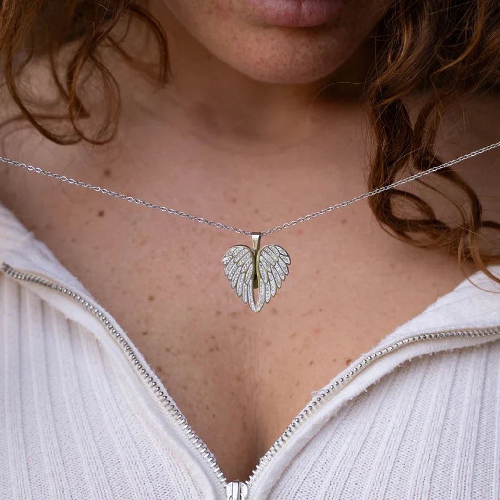 Cuando las palabras no sean suficientes, deja que este collar conmemorativo personalizado hable por ti. Sus delicadas alas, adornadas con 58 cristales brillantes, simbolizan 52 semanas del año y 6 días preciados: cumpleaños, aniversarios o el día en que te convertiste en mamá. En su interior, un colgante personalizable espera tu toque, listo para ser Grabado con un nombre, fecha o mensaje (¡hasta 30 caracteres!) that holds your deepest emotions.que contiene tus emociones más profundas.