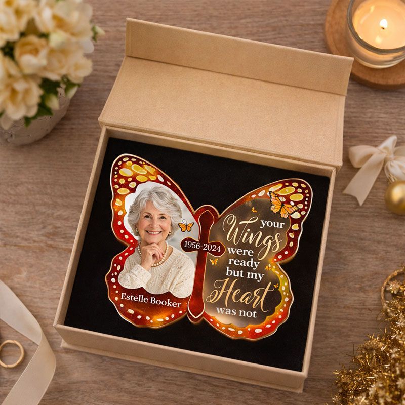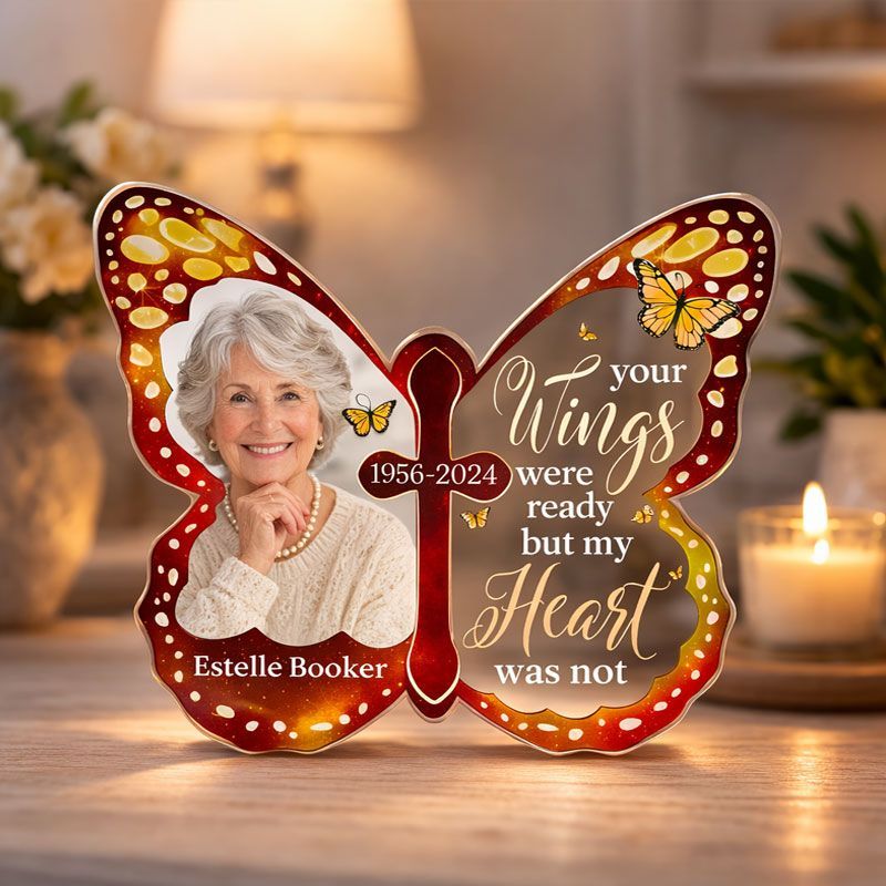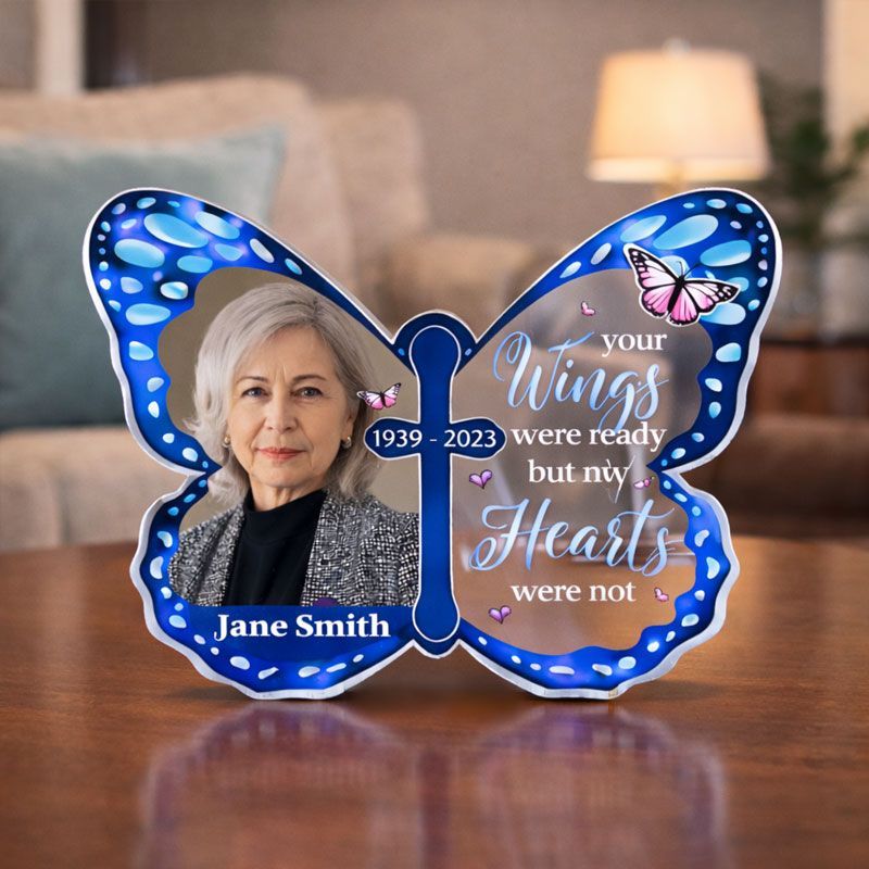 Placa de acrílico personalizada del monumento conmemorativo de la mariposa | Recuerdo de encargo de la foto y del nombre