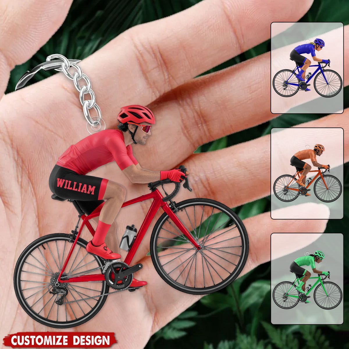 Llavero personalizado del ciclista de la bici del camino-regalo para el entusiasta y el ciclista del ciclismo-Llavero plano de acrílico